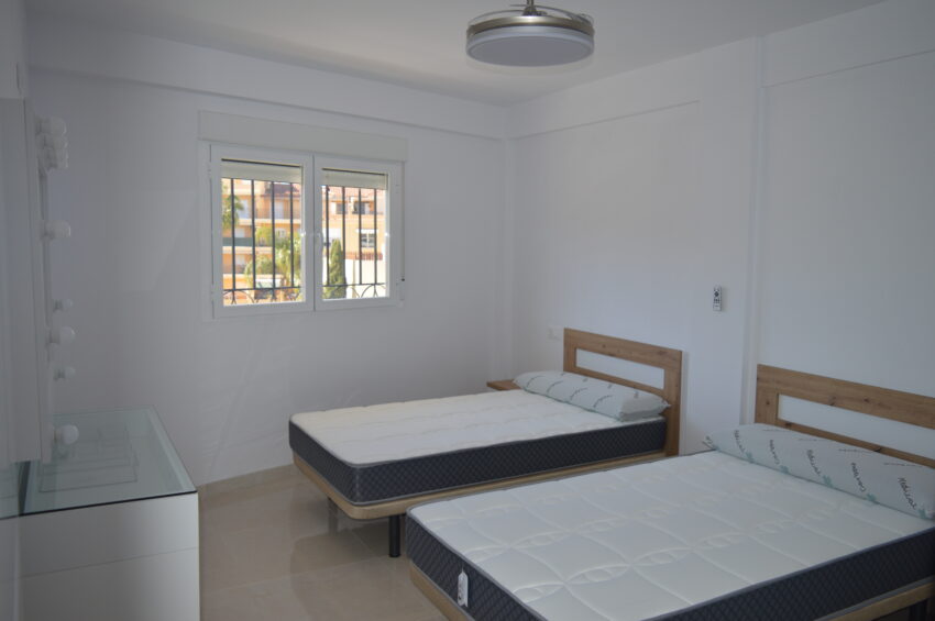 Apartamento de 3 dormitorios. Junto al faro de Torre Del Mar. 4ª planta con ascensor. 75 m2. 1 cama doble. 2 camas individuales de 1,05. 2 camas de 0.90 cm en litera. Armarios empotrados. 1 baño con plato de ducha. Salón comedor con terraza orientada al Sur (Sol de mañana). Ventiladores de techo en todas las estancias. Cocina abierta al salón. Vitroceramica, horno, microondas, lavavajillas. Todo eléctrico. Plaza de aparcamiento según disponibilidad. NO Animales. INSTALACIÓN DE WIFI (cuotas según tarifa). Estancia mínima de 8 meses. PROHIBIDO FUMAR.