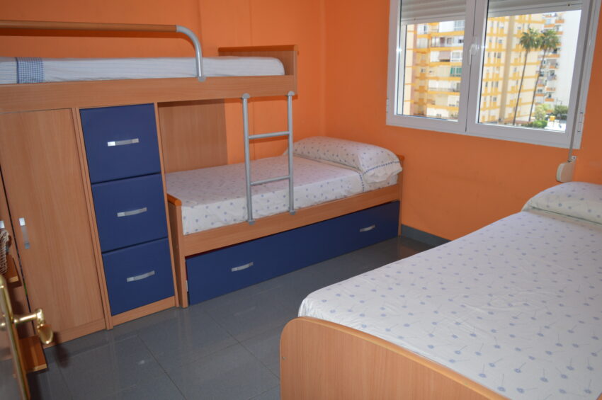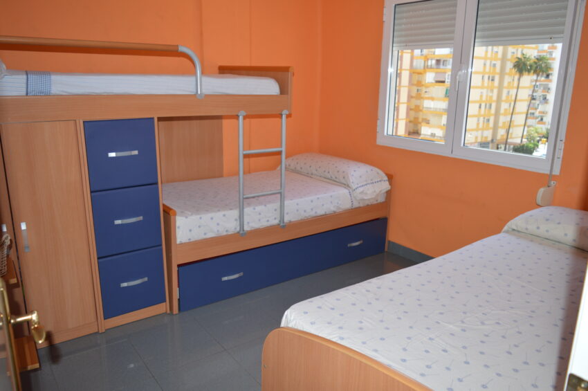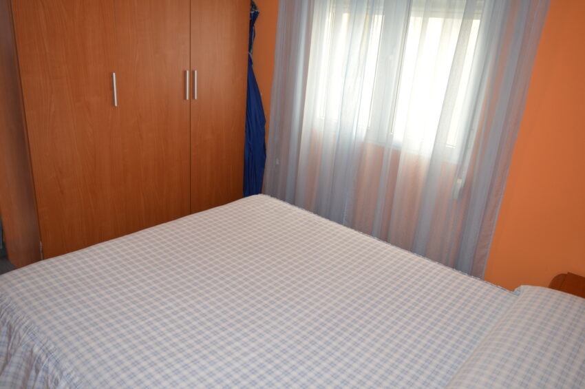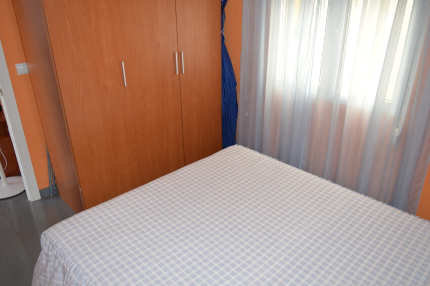 Apartamento junto al mercadillo. 5ª planta. Ascensor. 2 dormitorios. 1 cama doble, 1 cama individual y 2 en litera. 1 baño con plato de ducha. Cocina independiente. Microondas. Horno. Vitroceramica. Termo de agua de gas butano automático. Salón comedor. Aire acondicionado en el salón. Terraza abierta. Instalación de Wifi (cuotas no incluidas). ESTANCIA MINIMA DE 6 MESES. Orientación Oeste (sol de tarde). Céntrico. No animales. Prohibido fumar. A 100 mts de la estación de autobuses.