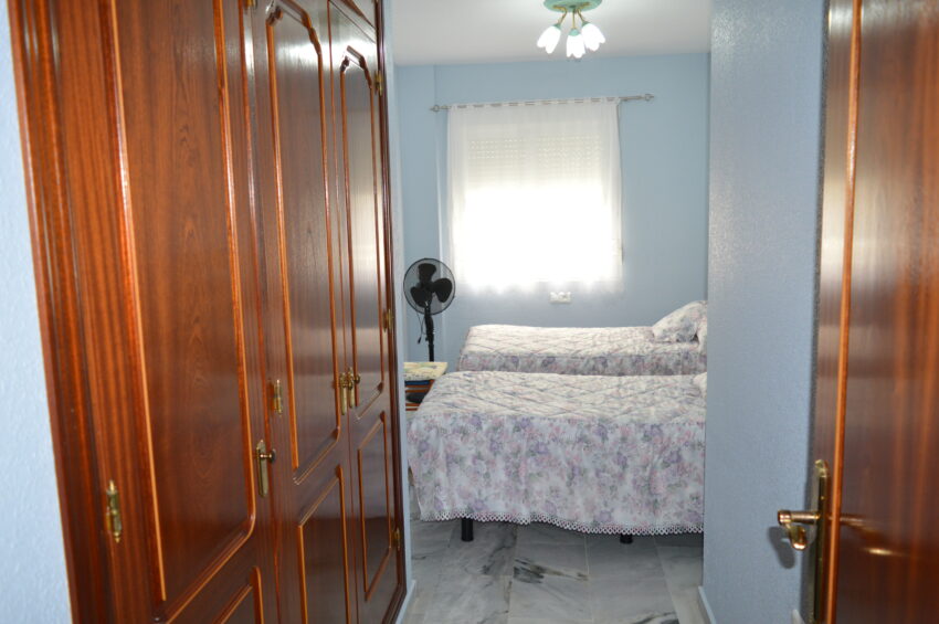 Piso situado frente la Tenencia de Alcaldía. Orientación Oeste. Unos 95 m2. 4ª planta. 2 ascensores. 3 dormitorios. 1 cama doble y 4 camas individuales. Cocina independiente. Vitroceramica. Microondas. Horno. Todo eléctrico. 2 baños con bañera. Salón comedor con gran terraza abierta. Aire acondicionado frío/calor en salón. Sol de tarde. A pocos metros del paseo marítimo. ESTANCIA MINIMA DE 6 MESES. Mascotas a consultar. Prohibido fumar. Instalación de wifi (cuotas no incluidas). Zona tranquila.